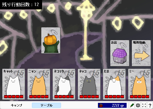 【対応レベル】とくになし【ジャンル】店 【想定プレイ時間】5分未満 Next用シナリオ。セル表示ギミックで遊んでみた店シナリオです。 回数付きの補助アイテム(精神異常回復、鑑定)と、全体防御・抵抗バフスキル、敵単体暴露&防御デバフスキルを購入できます。 2025/6/23:Py版を公開しました。 最終更新日:2025/6/23 |